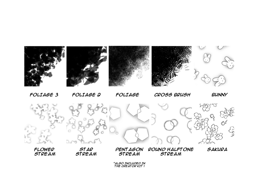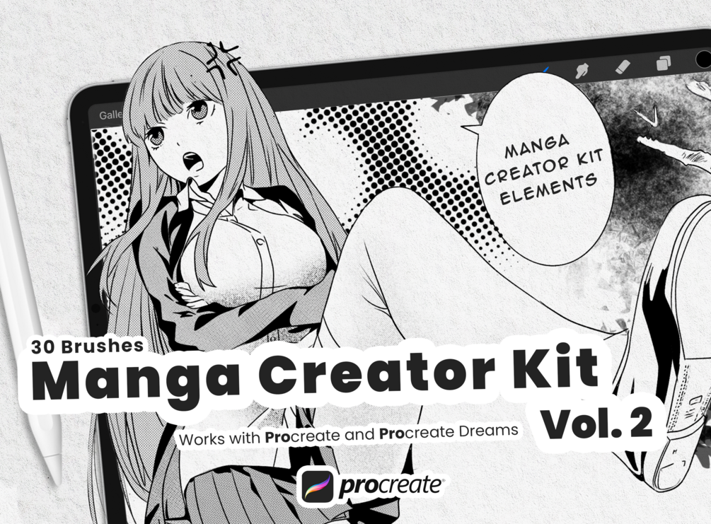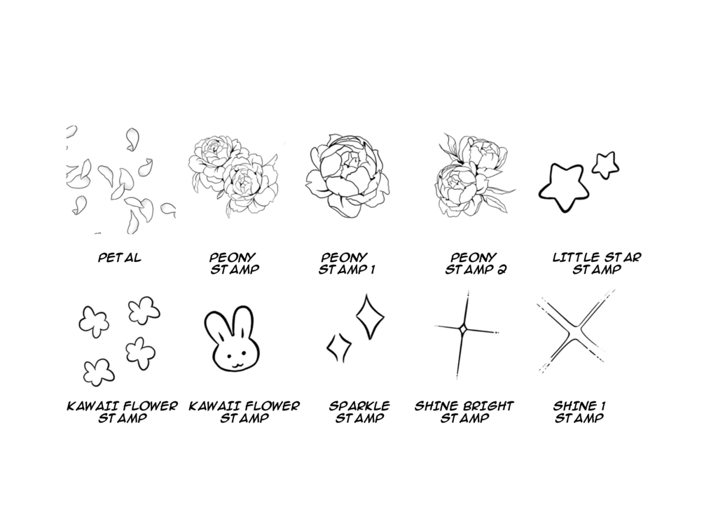 Introducing the Manga Creator Kit Elements - the perfect addition to your Procreate toolbox for creating stunning Shoujo manga and webtoon illustrations. This pack includes brushes for foliage, bunnies, stars, pentagons, and cherry blossoms, as well as glitter, sparkle, and flower stamps to add extra magic to your work. With these materials, you'll be able to elevate the quality and efficiency of your manga creations in Procreate. Draw your characters in dynamic and eye-catching environments and take your manga to the next level with the Manga Creator Kit Elements.